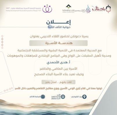أمسية جمعت بين الأصالة والمعرفة، تخللتها لحظات مفعمة بالإلهام والتأمل حول فنون بناء الأسرة وتوازنها.